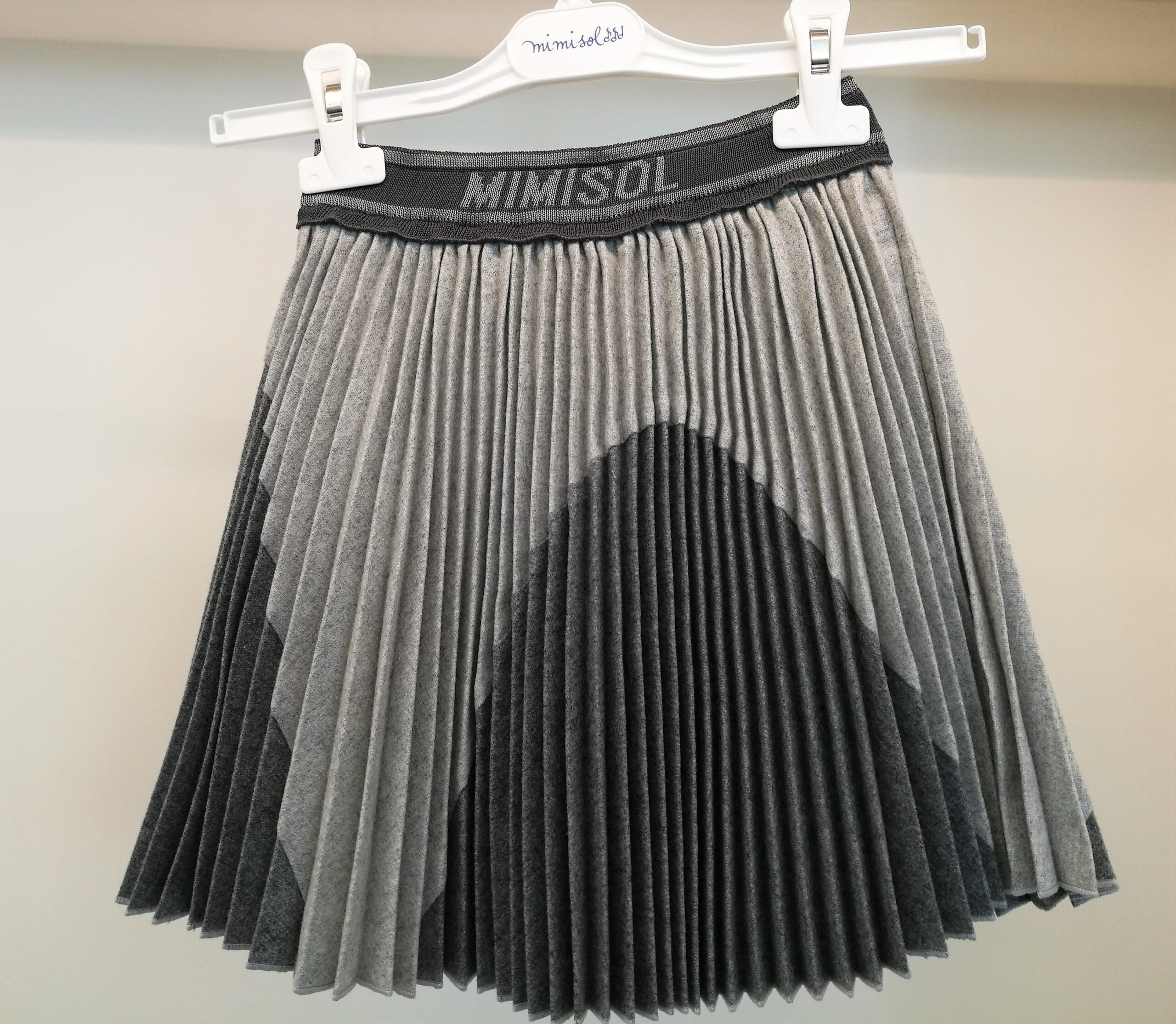 Gonna plissé grigio due tonalità grigio scuro/grigio chiaro. Fascia elastica in vita logata “Mimisol”