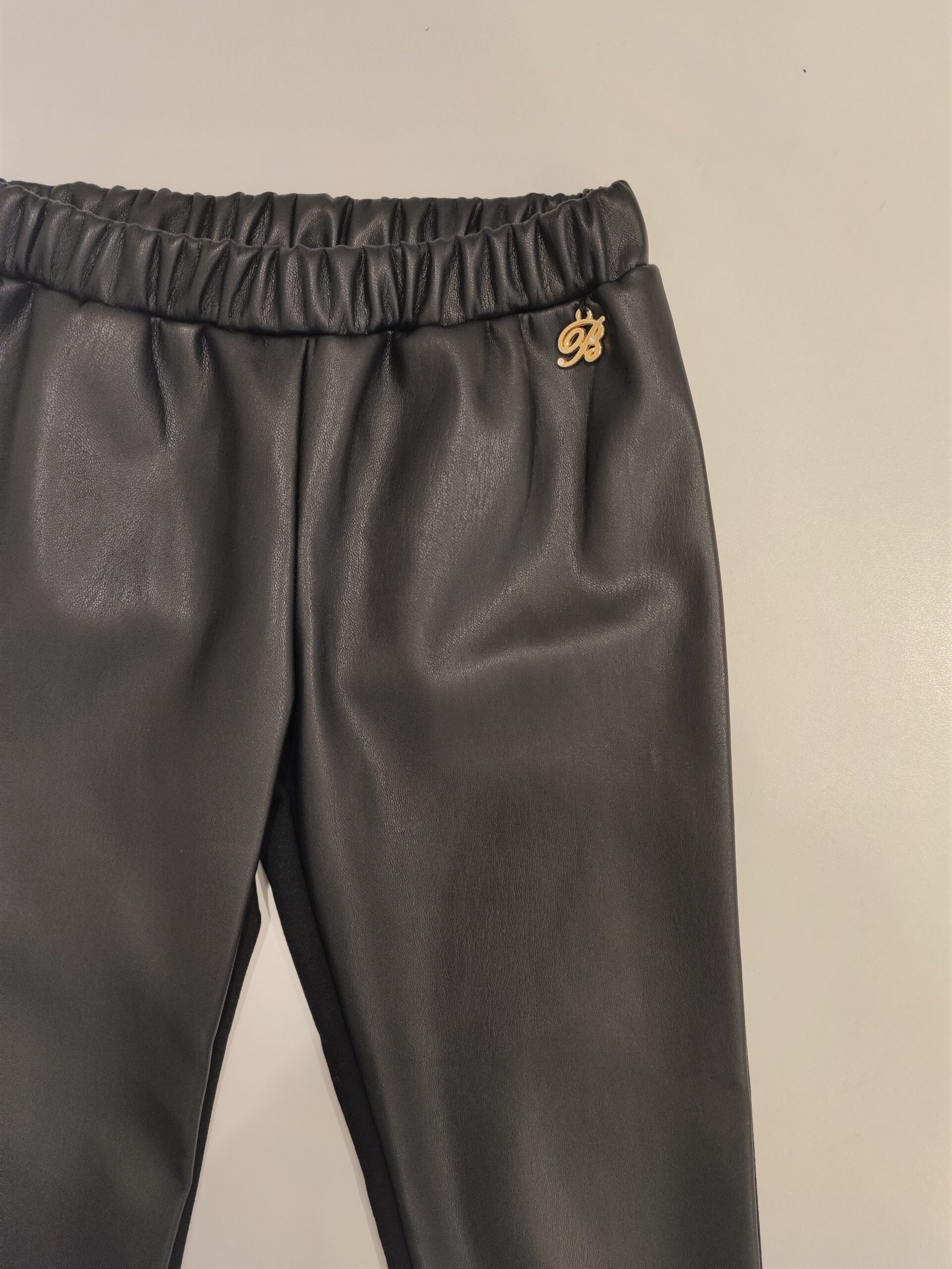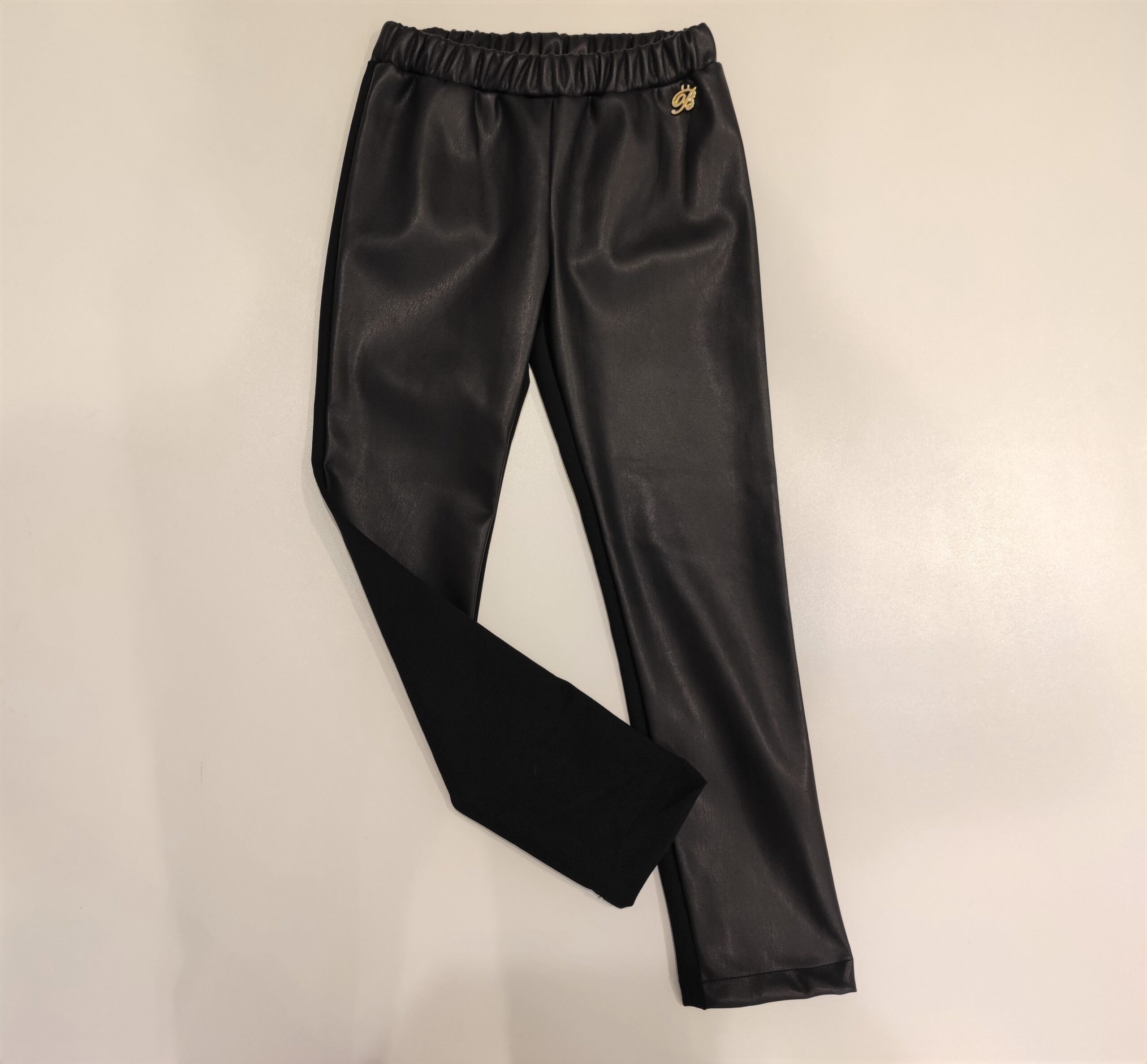 Leggings in ecopelle nero davanti e tessuto dietro.