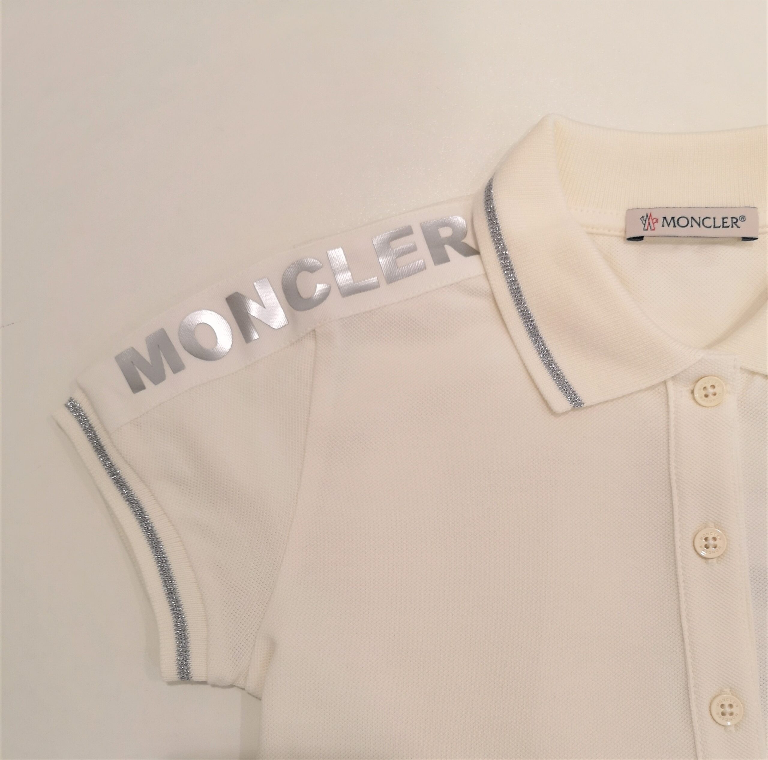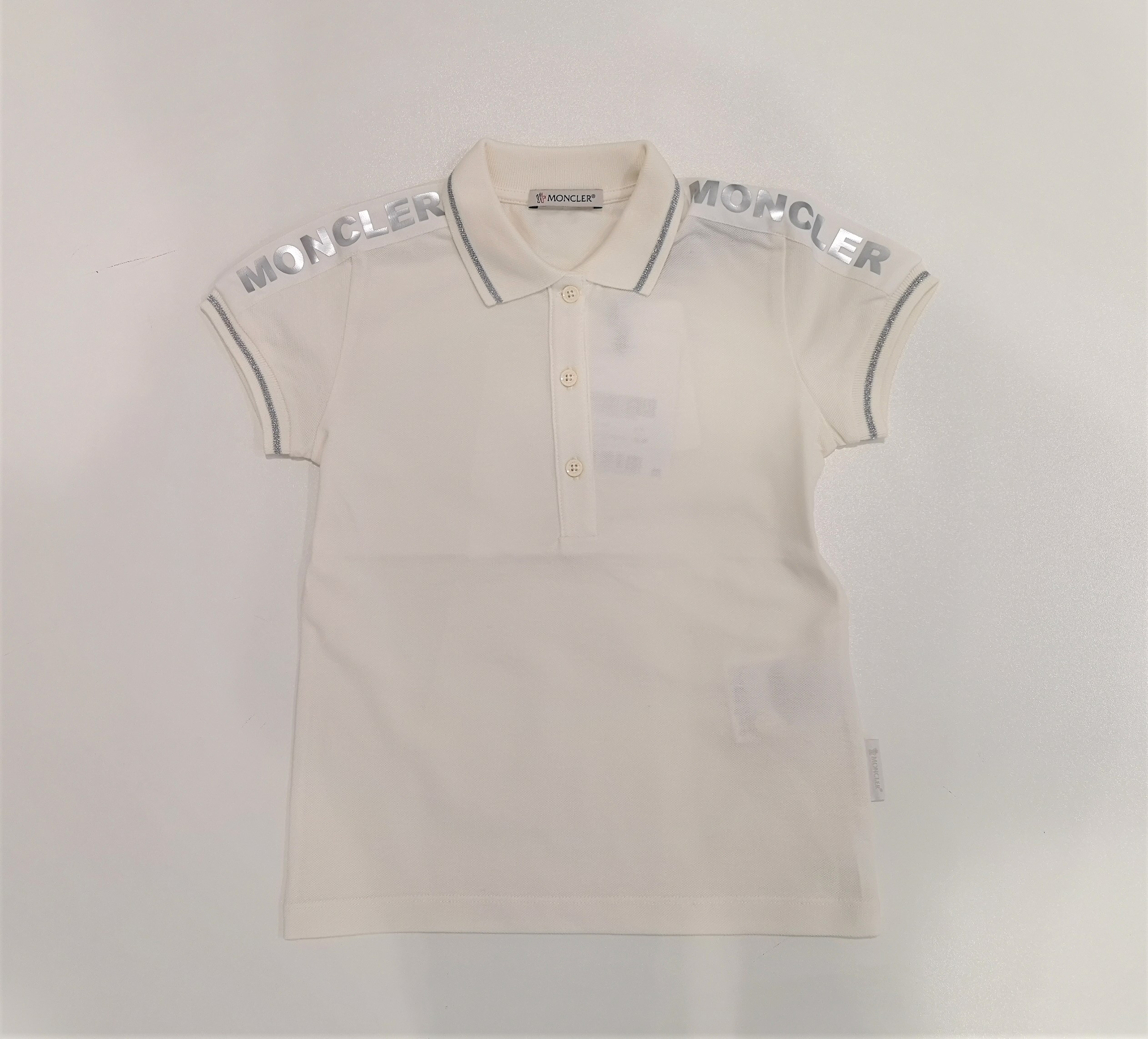 MONCLER Polo manica corta bianca scritta Moncler argento