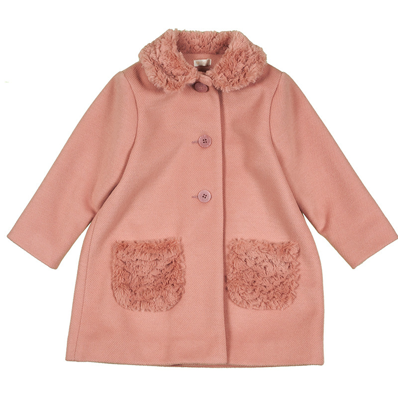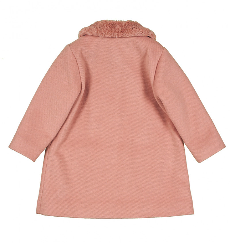 Grazioso cappotto rosa della collezione “Pippi”, impreziosito da dolce colletto e taschine in eco-pelliccia dello stesso colore e bottoncini sul fronte. Perfetto per accompagnare la tua dolce bimba in ogni occasione.