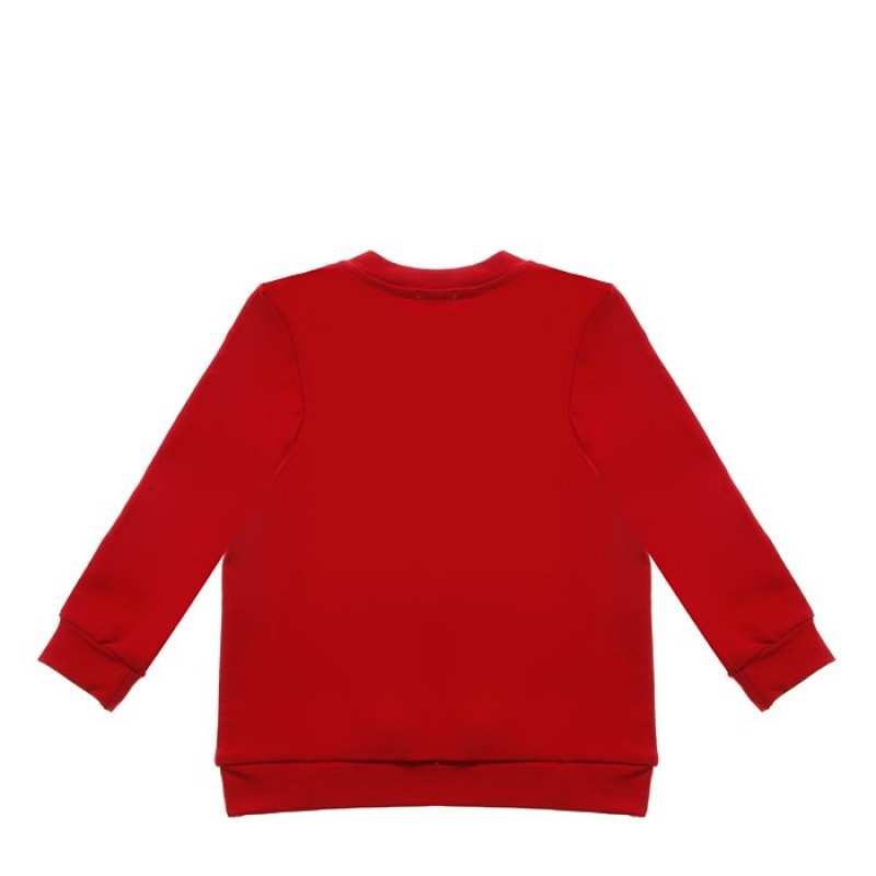 Morbida felpa rossa realizzata in cotone con una simpatica stampa applicata al centro e un fiocco in vichy.