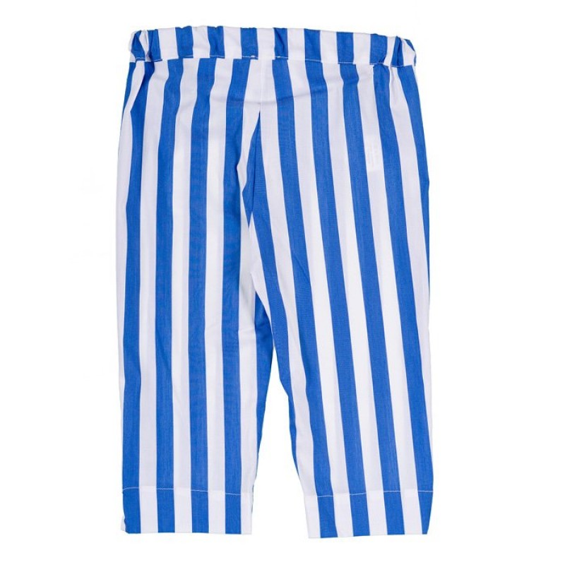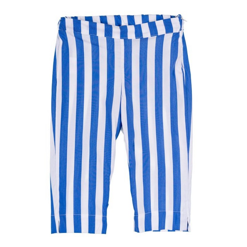 Grazioso pantalone rigato bianco e blu della collezione “Polipetta Girl”. Chiusura laterale con zip.