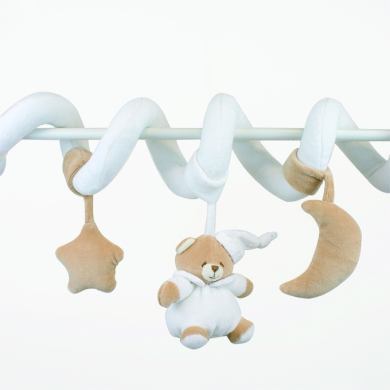 La spirale Nanàn della collezione Tato è un amico e uno dei primi compagni del tuo bebé. Il morbido orsetto ha una composizione in puro cotone al 100%. La spirale è in ciniglia, materiale classico di Nanàn.