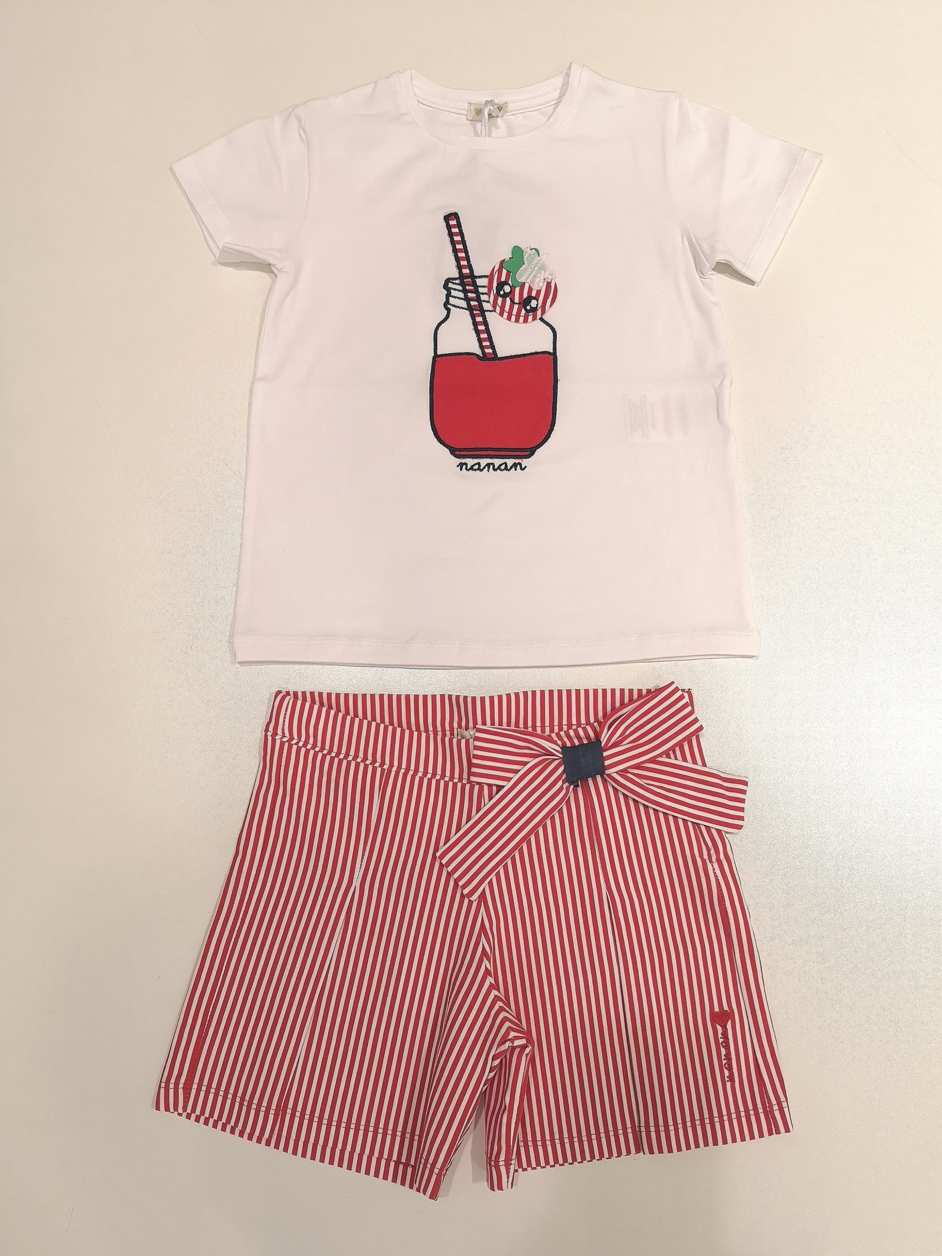 NANAN Pantaloncino jersey righe rosse Fragolina bambina