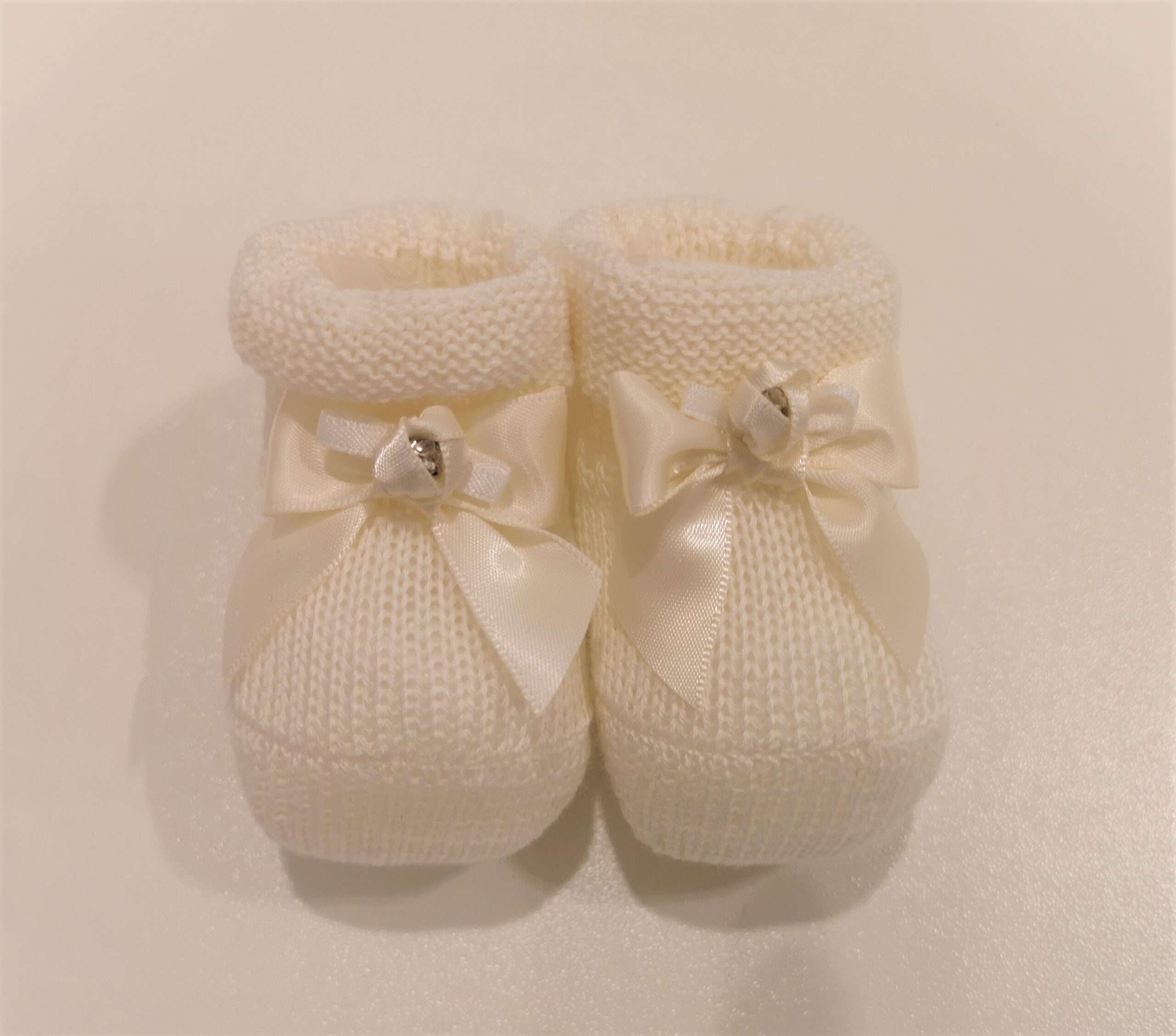 PAOLO ROMBOLI Scarpette panna con fiocco di raso corredino neonata