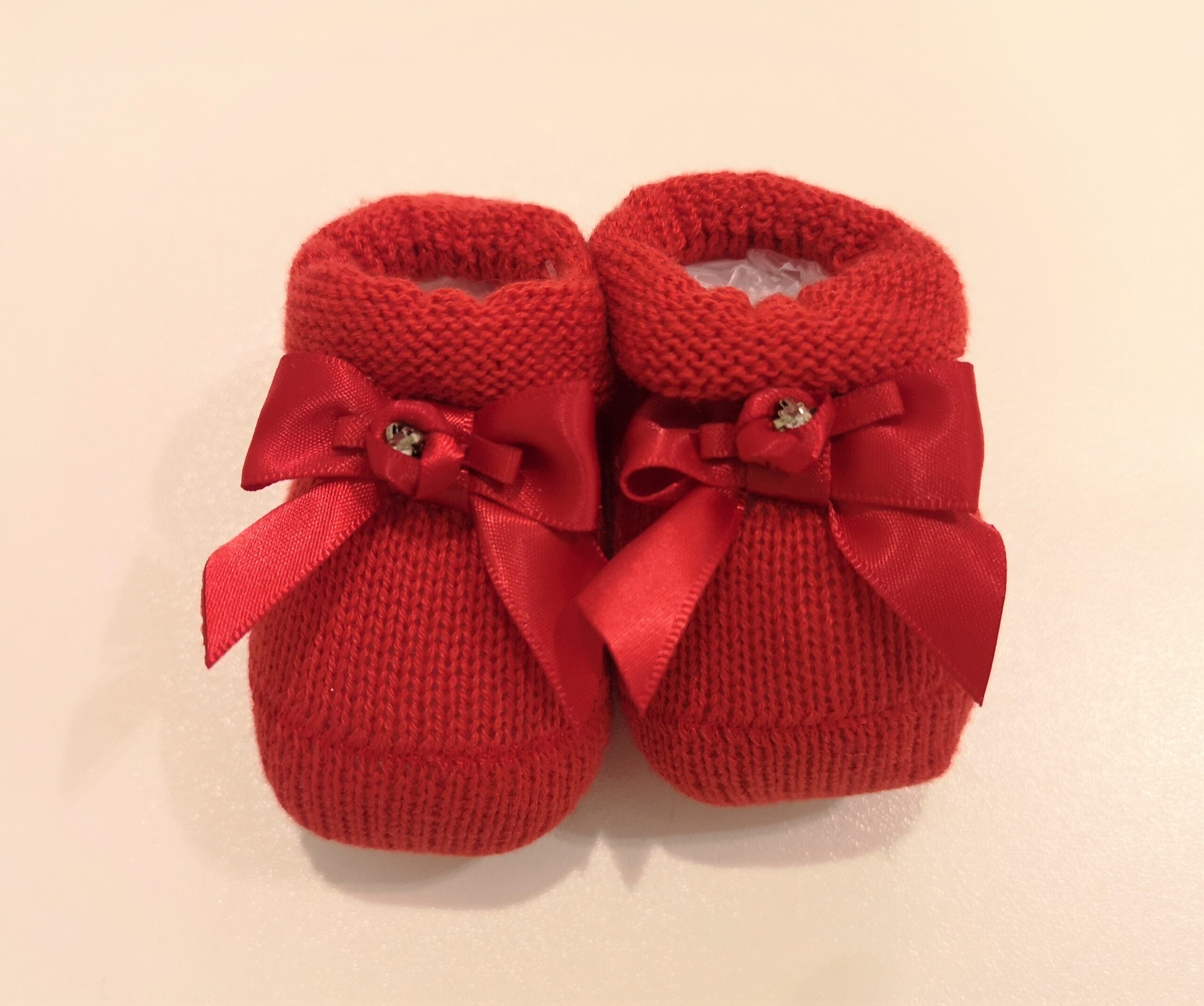Scarpina in maglia PAOLO ROMBOLI con fiocchetto di raso rosso con piccolo strass davanti