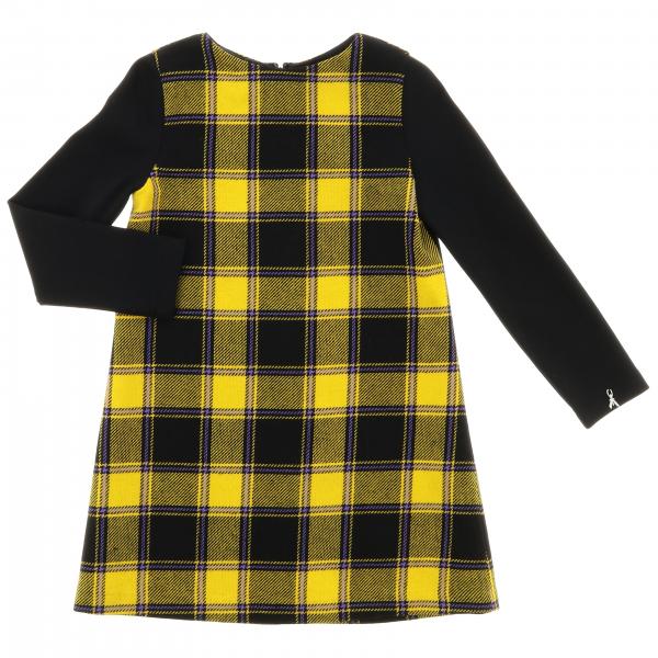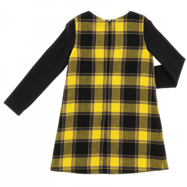 Vestito girocollo manica lunga in tessuto check giallo e nero. Apertura con zip dietro