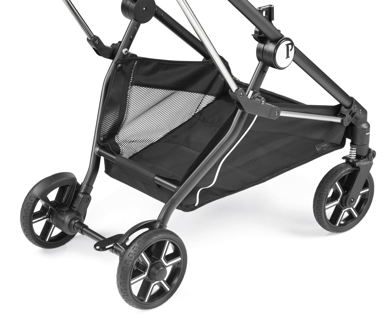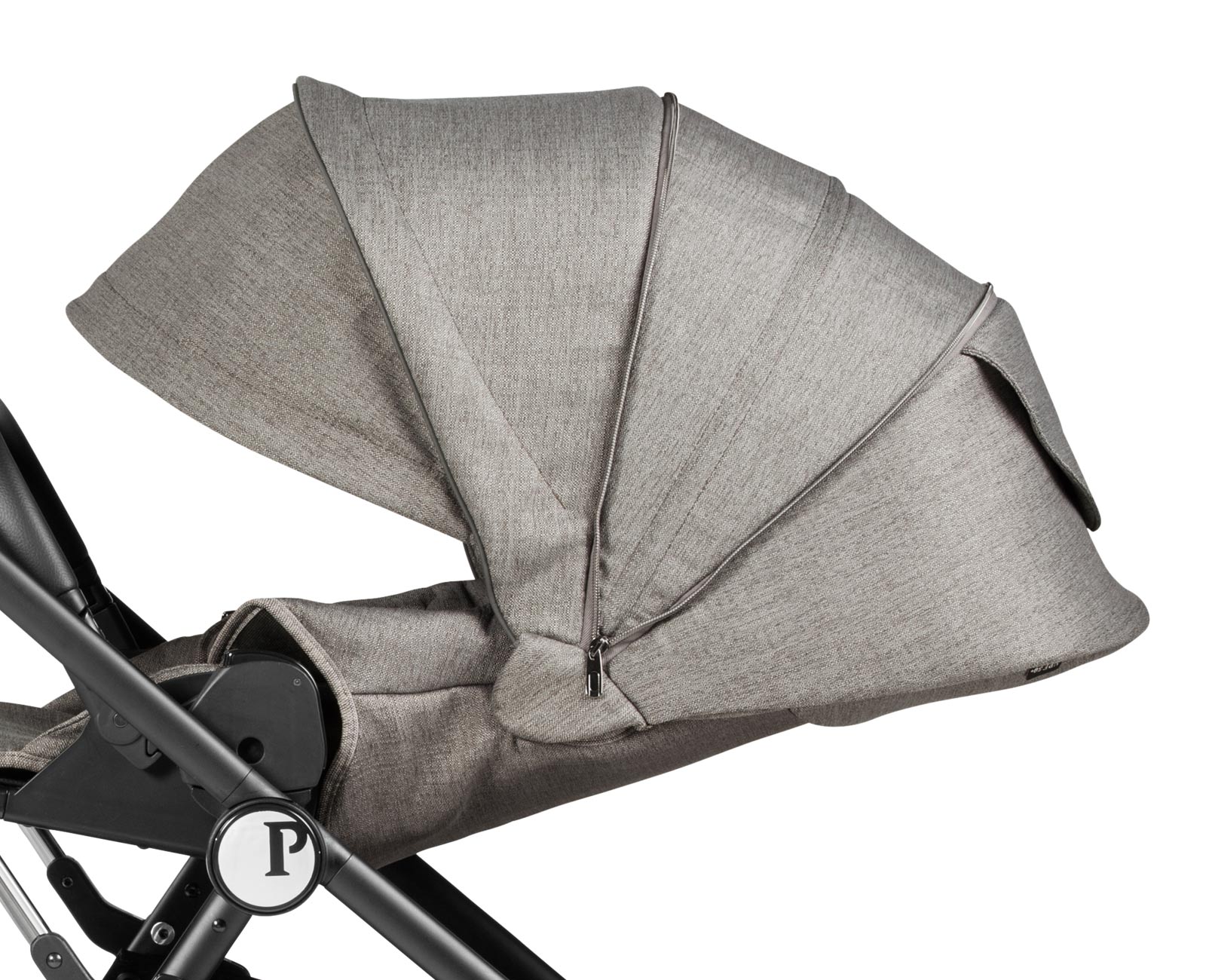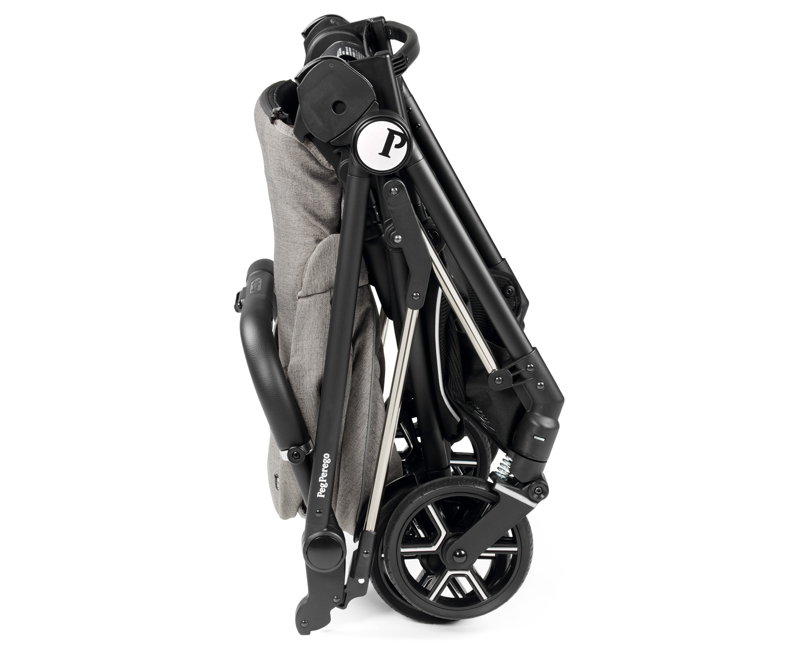 L’ingombro da chiuso è minimo con la seduta agganciata in entrambe le posizioni. Sta in piedi da solo e la seduta del passeggino rimane sempre compatta e protetta per un’igiene ottimale.