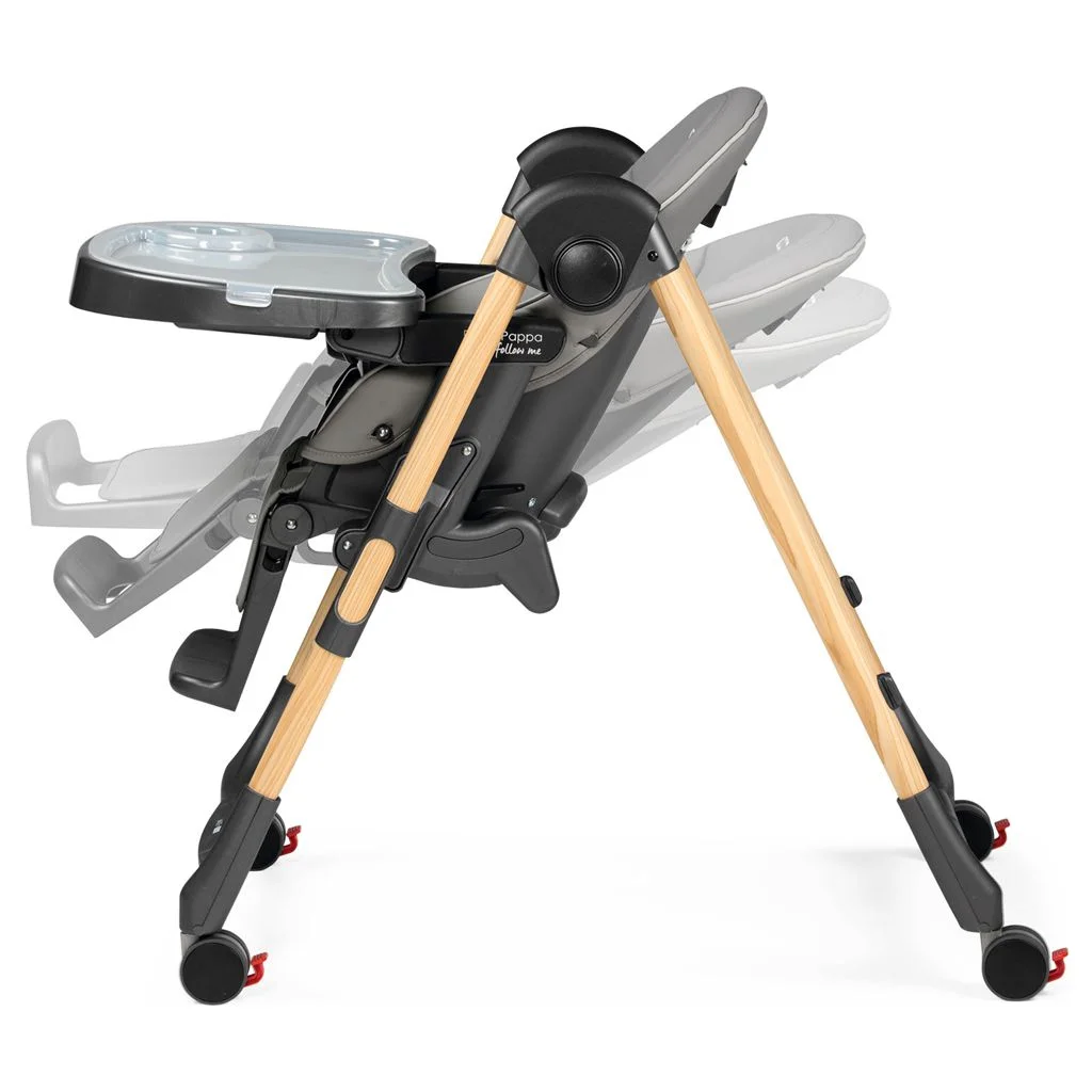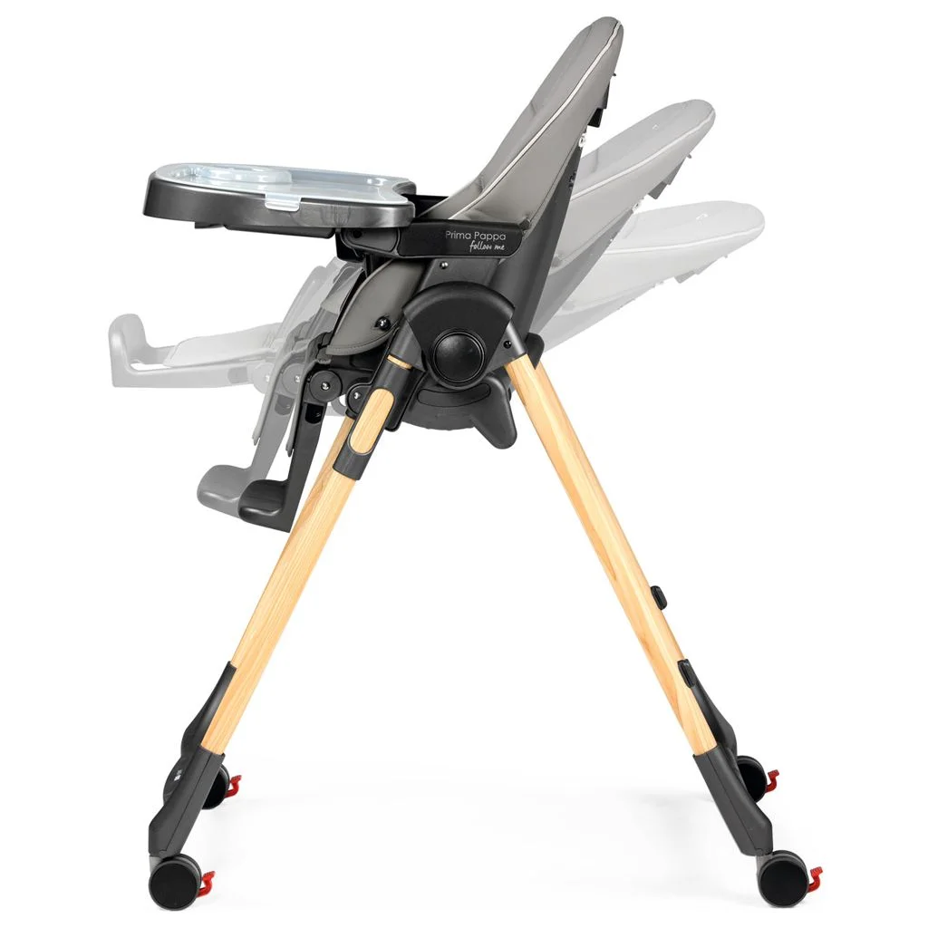 La seduta si sposta in avanti simultaneamente trasformando il seggiolone in unโaccogliente sdraietta per dolci nanne in tutto relax.