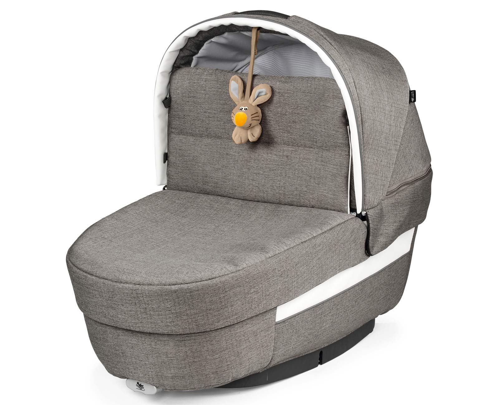 L’elegante maniglia di trasporto integrata in ecopelle è un brevetto Peg Perego. Puoi abbassare la capottina con una mano sola anche quando hai in braccio il tuo bebè e inoltre la navicella diventa dondolo con la base basculante, nido estraendo i piedini e culla agganciata al Bassinet Stand (accessorio).