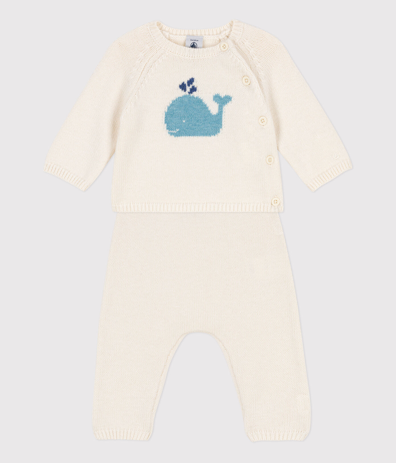 PETIT BATEAU Completo con balena in maglia di lana e cotone neonato