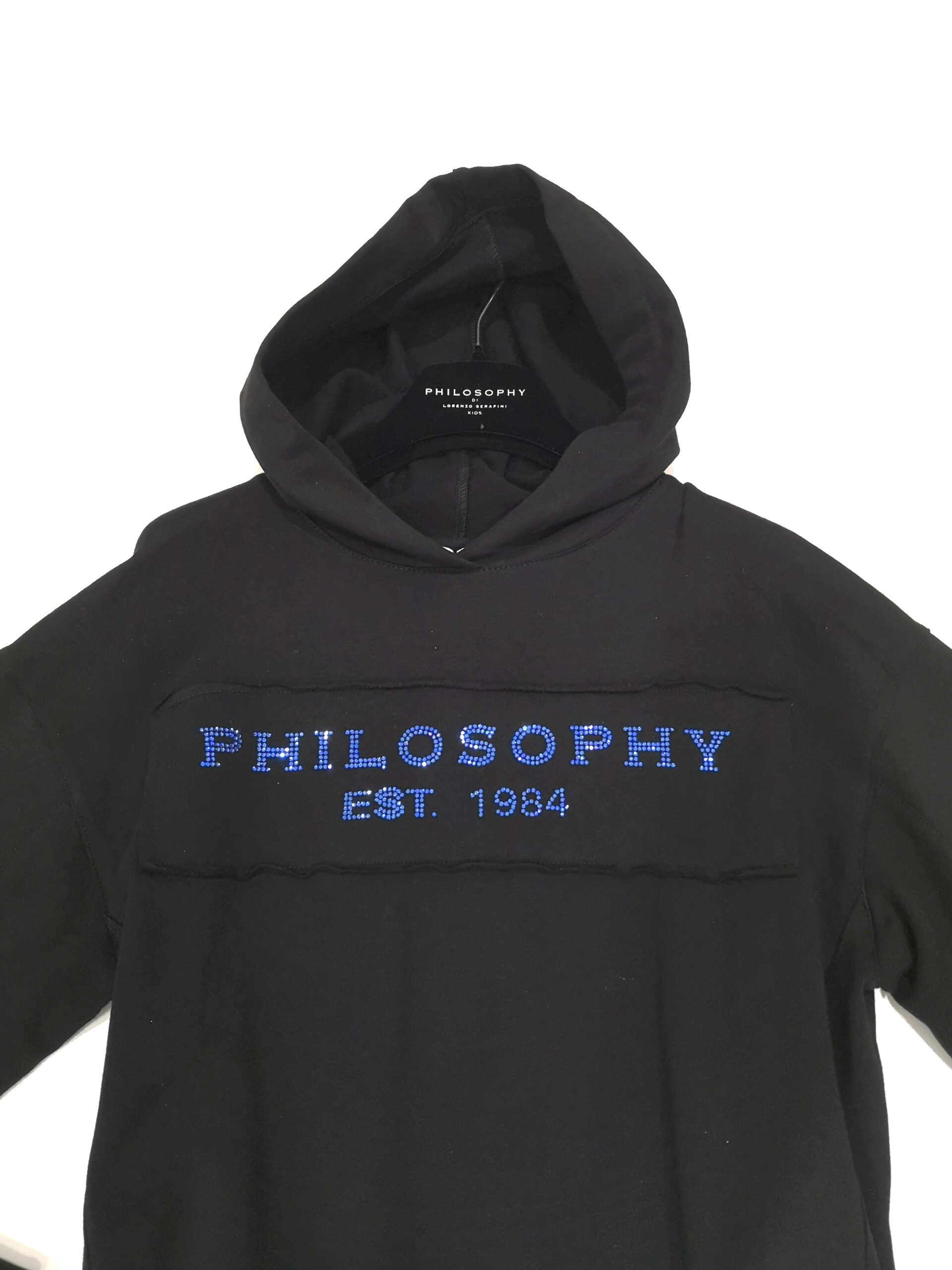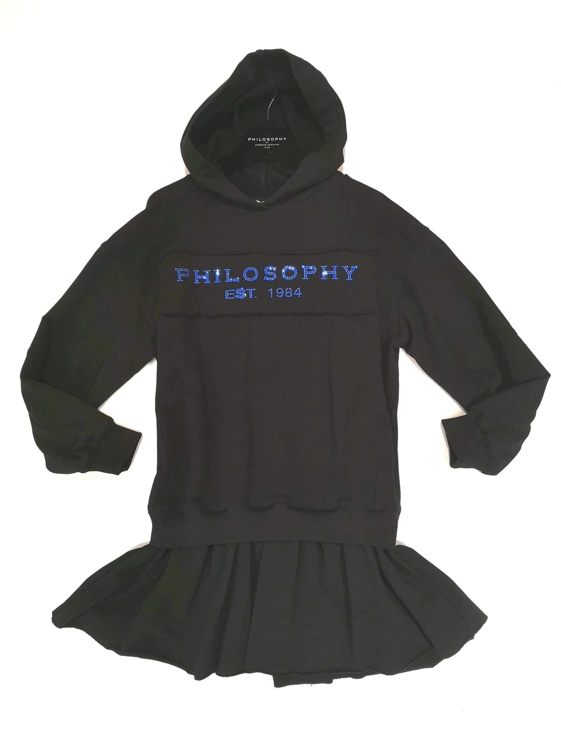 PHILOSOPHY by LORENZO SERAFINI Abito felpa nero logo bluette strass con cappuccio