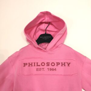 PHILOSOPHY by LORENZO SERAFINI Abito felpa rosa logo bluette strass con cappuccio