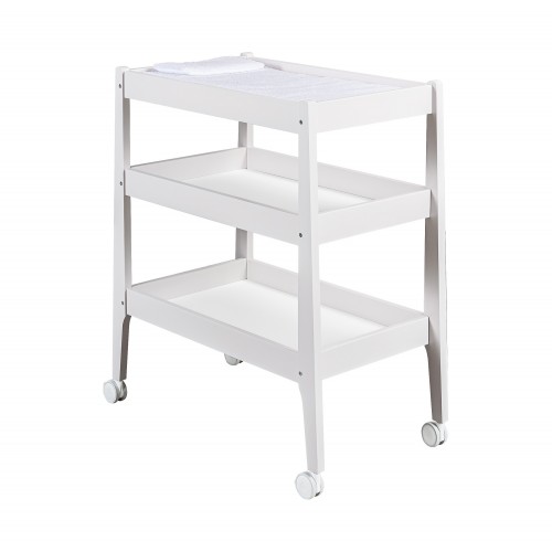 Il mobile fasciatoio, ispirato al design nordico e funzionale, è ideale per organizzare tutto il necessario per il cambio e il bagnetto, ricorda la struttura di un carrello. Dotato di tre ripiani aperti, di cui il primo ospita il materassino in spugna, offre un ampio spazio per tenere vestitini, biancheria, creme e pannolini.