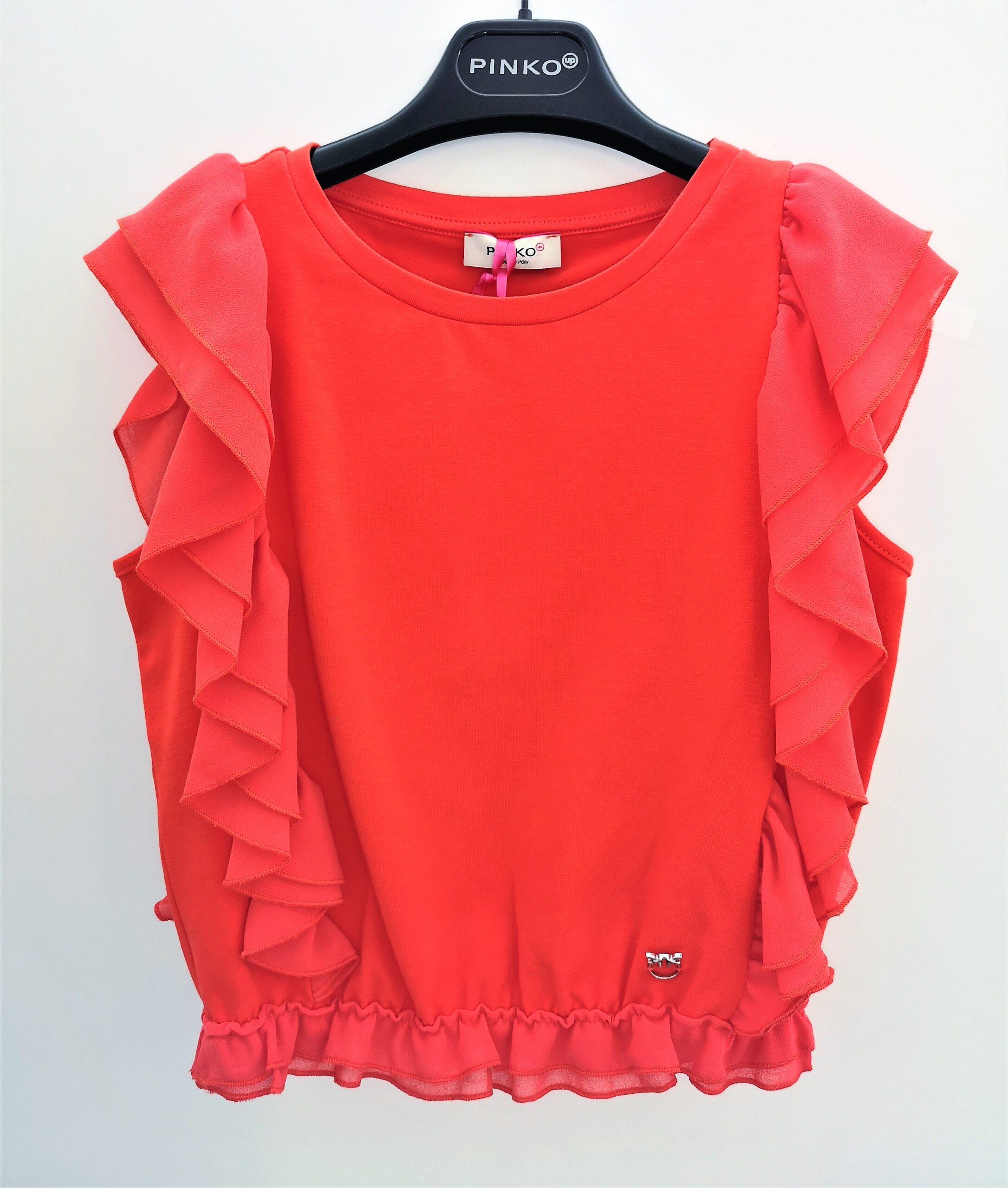 PINKO Top smanicato jersey cotone rosa corallo meduna