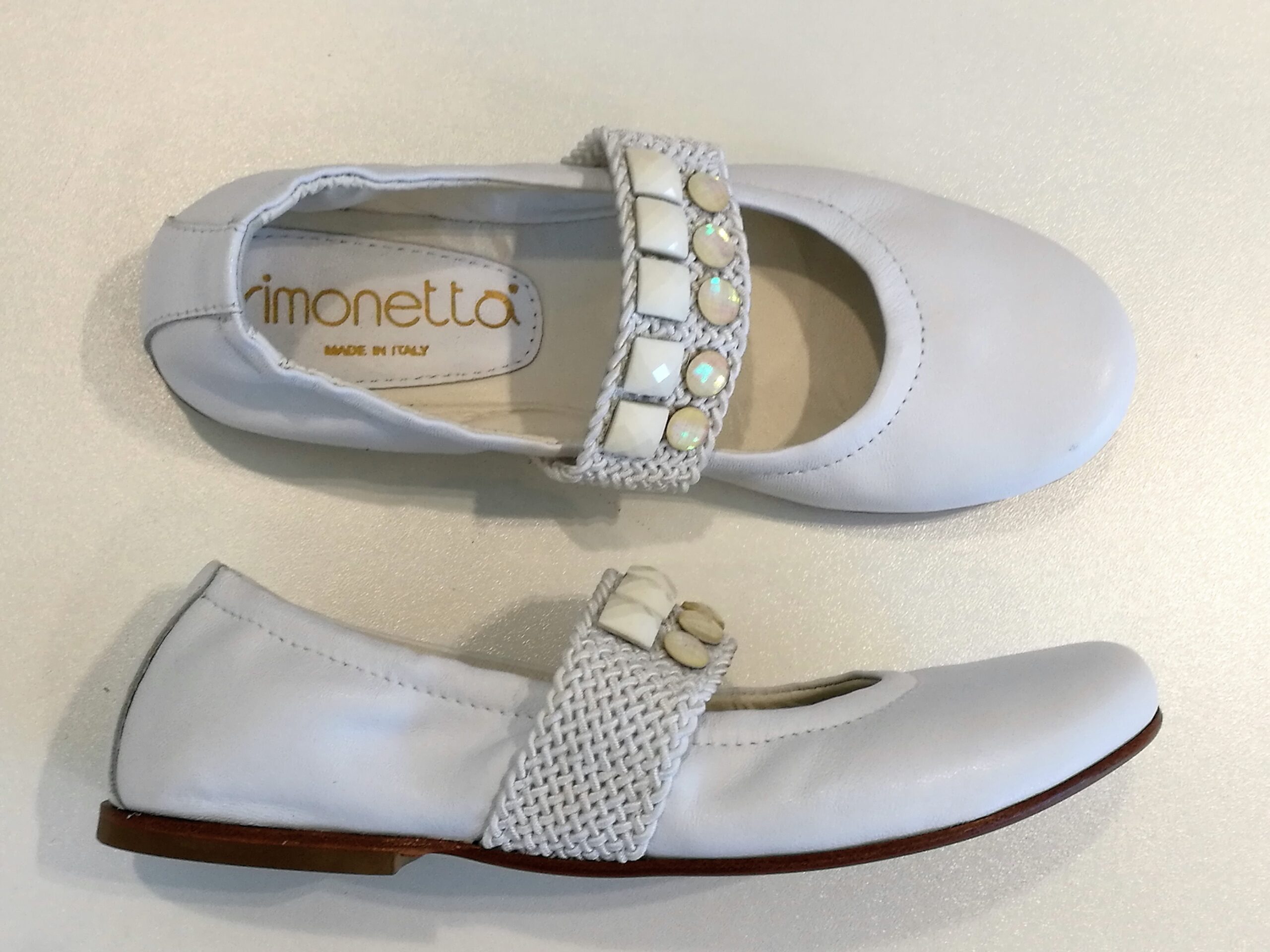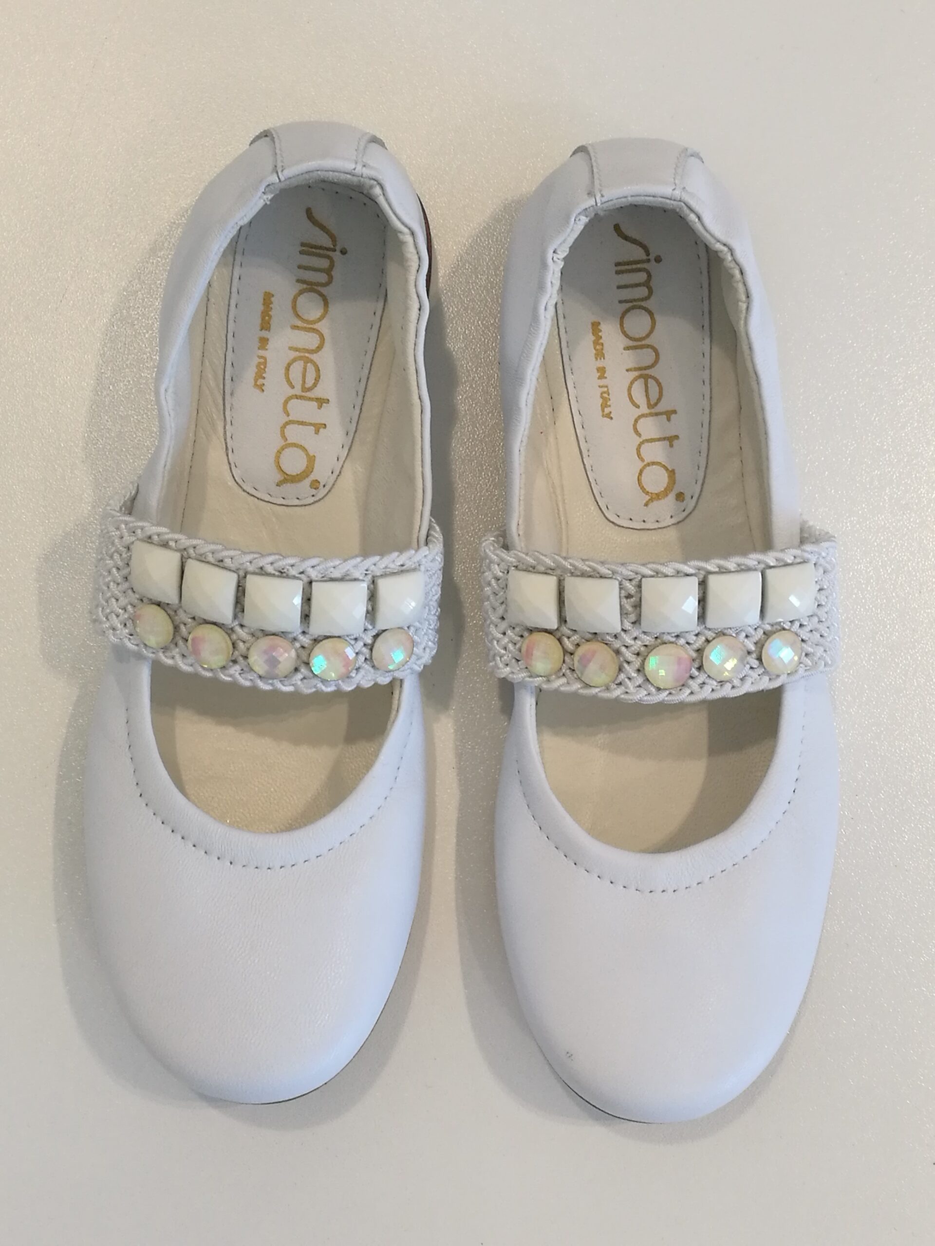 SIMONETTA Ballerine bianche con pietre su fascia elastica