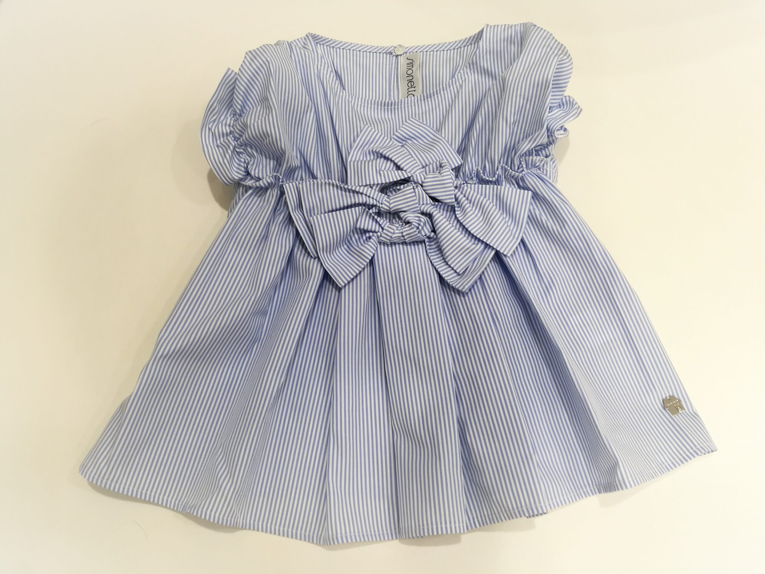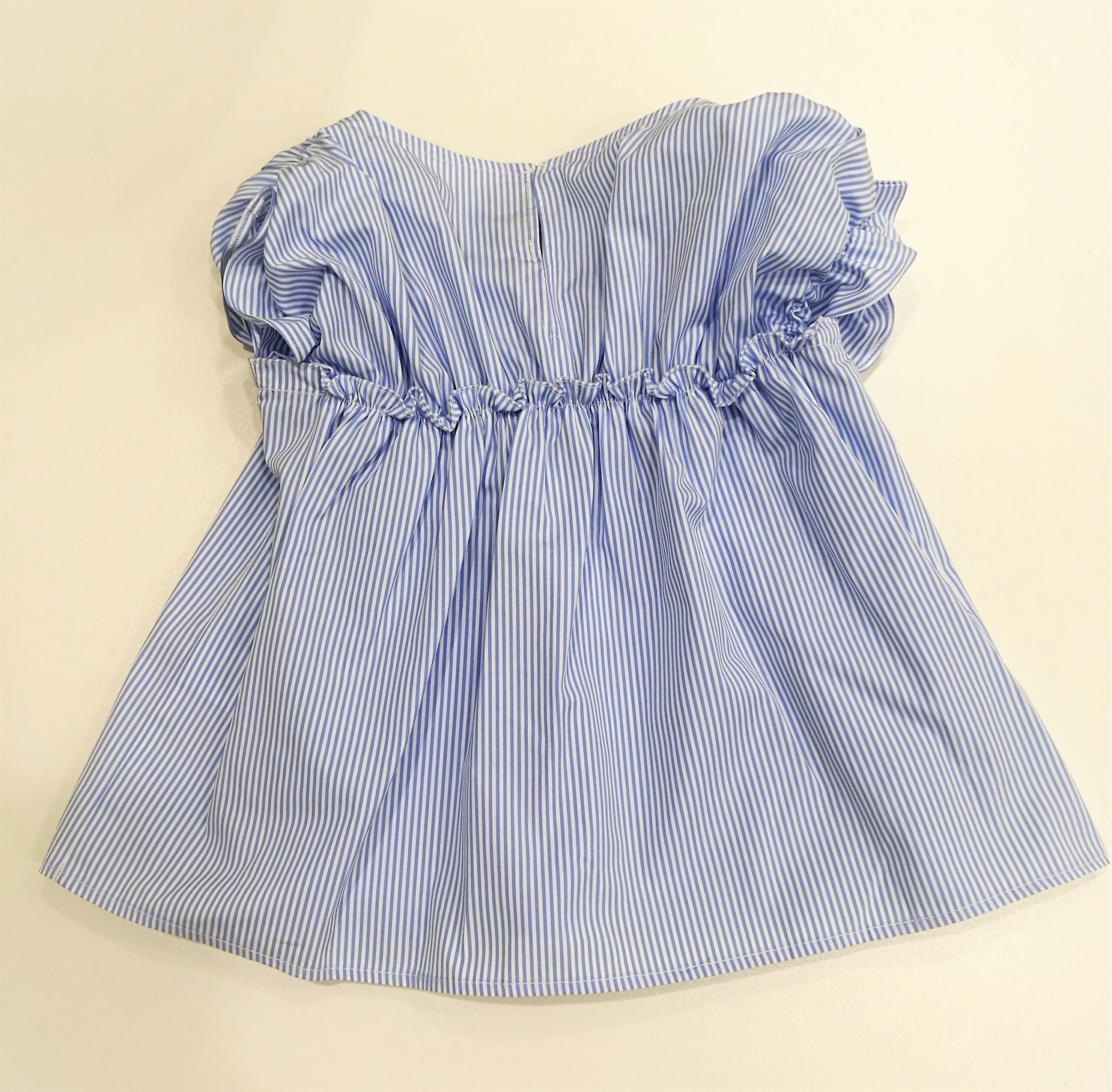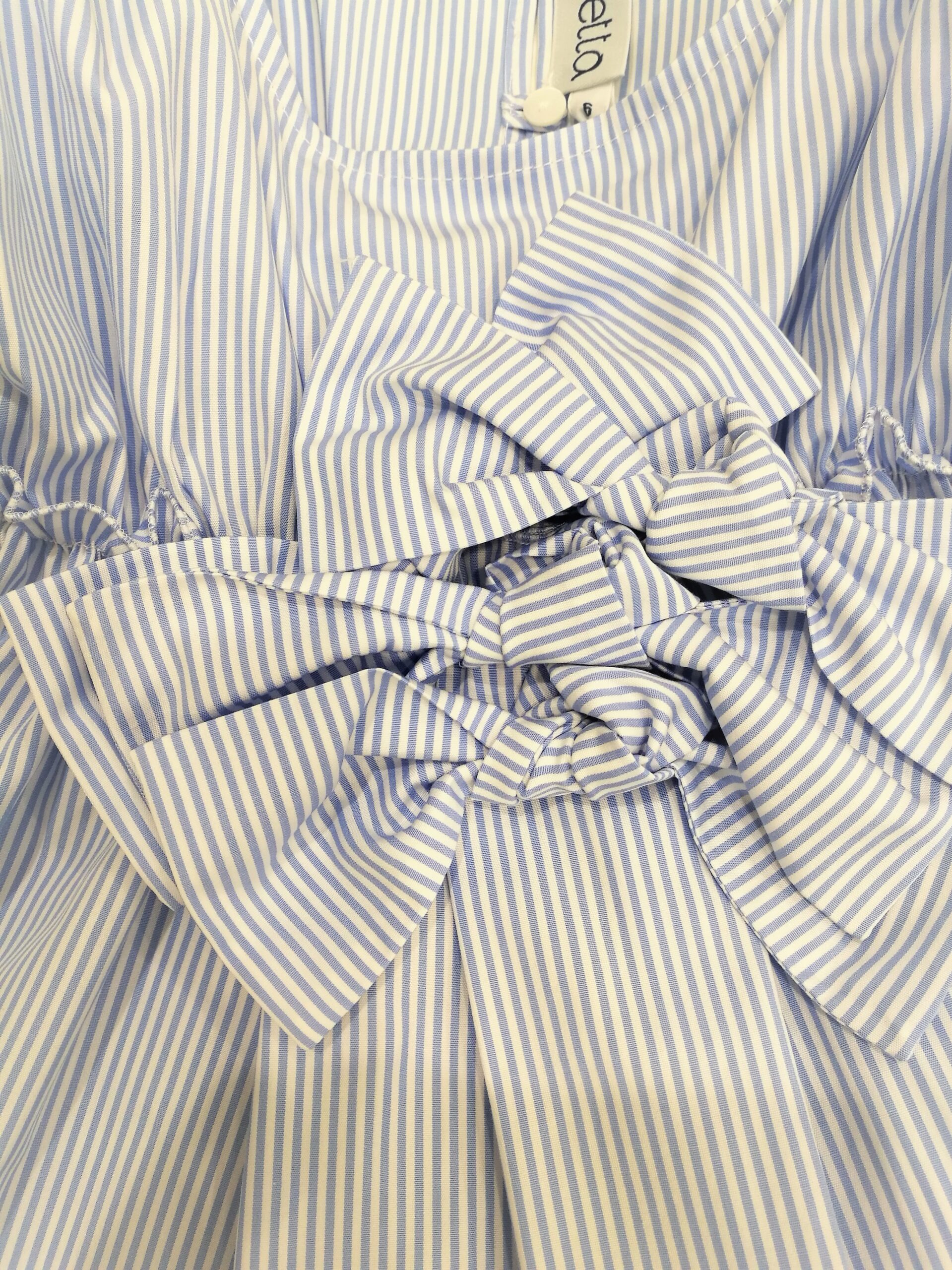 Camicia smanicata con fiocchi a righine azzurre