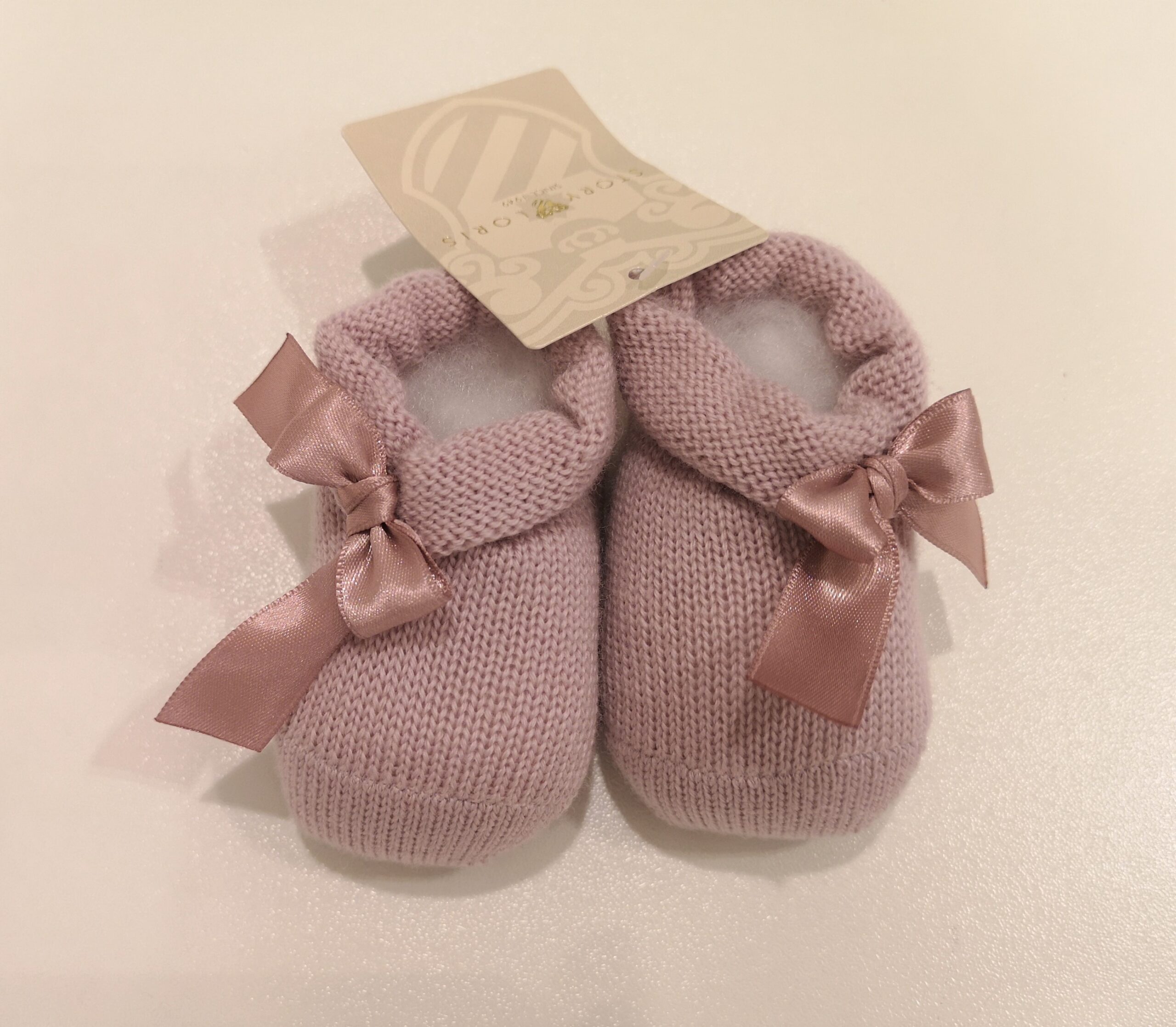 STORY LORIS Scarpette glicine con fiocco di raso corredino neonata