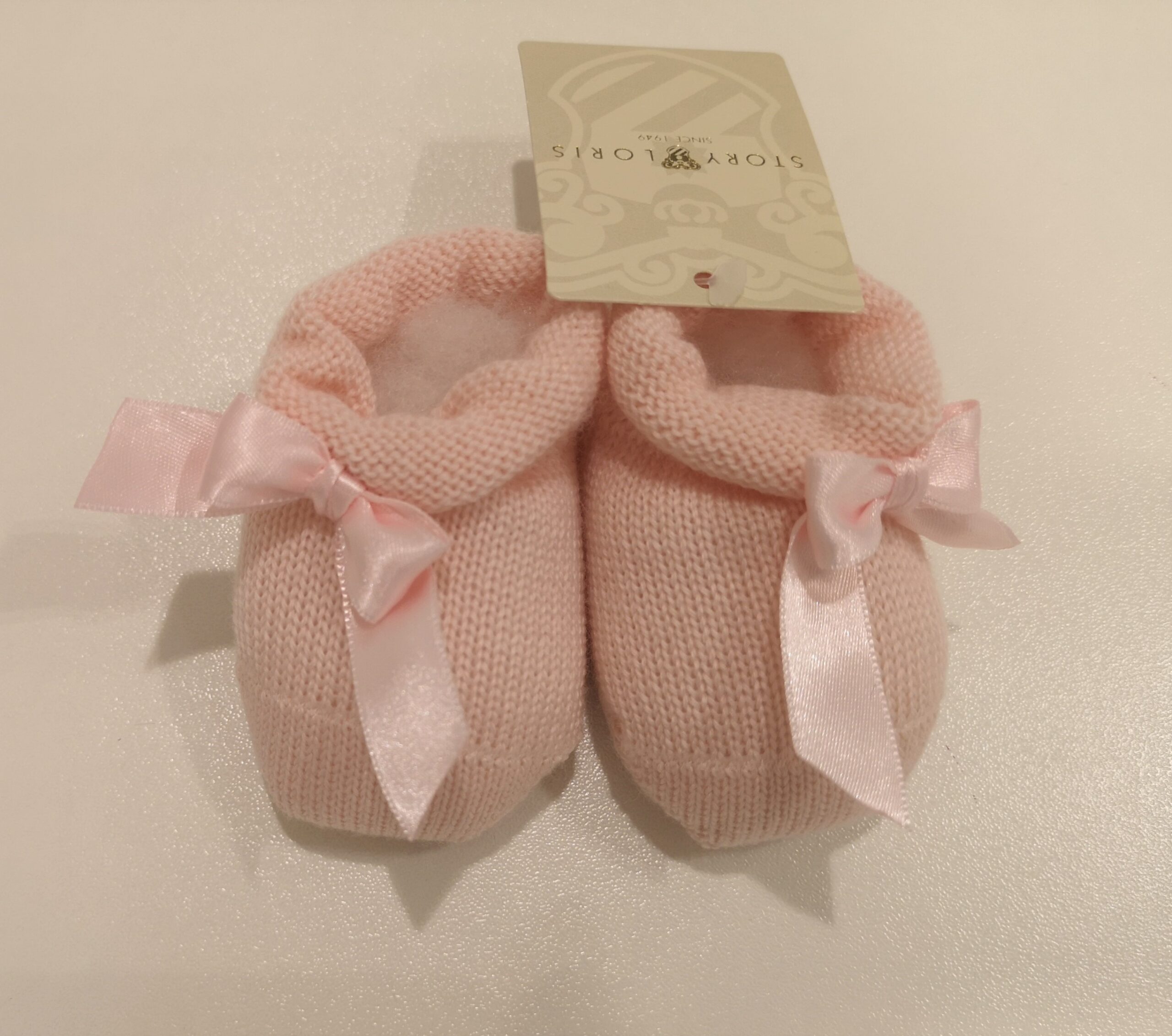 STORY LORIS Scarpette rosa con fiocco di raso corredino neonata