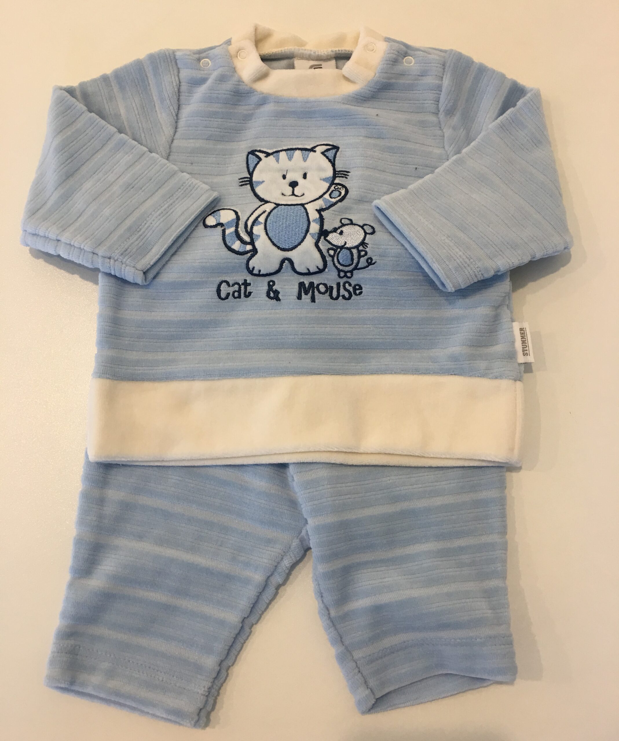 STUMMER Completo nascita in ciniglia azzurro gattino corredino neonato