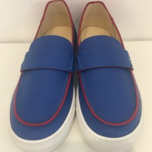 Mocassino ANDREA MONTELPARE in pelle bluette con bordi in colore rosso. Suola in gomma bianca.   Colore: bluette