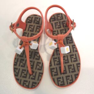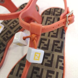 Sandali infradito in gomma arancione. Suola interna in materiale istituzionale FENDI con logo. Ciodolini a forma di cubetti bianchi logati