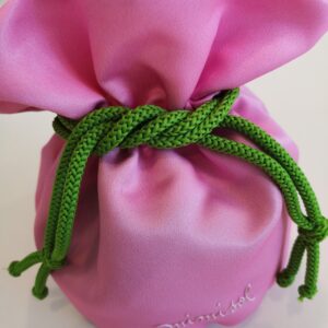 MIMISOL Borsa a secchiello tessuto rosa logata